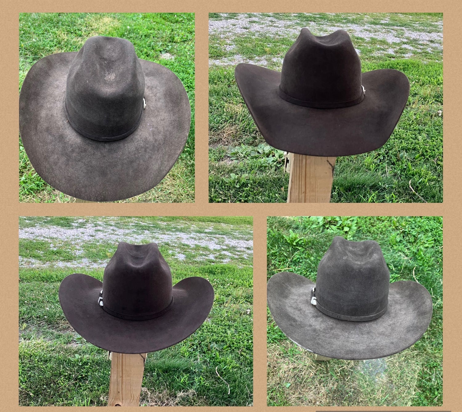 We will brush it off good and get all the dirt out then flatten the brim completely with heat and also push the crown out to where it looks like how you first bought it. We then steam it and shape it how it should be then apply a stiffener to help it hold.